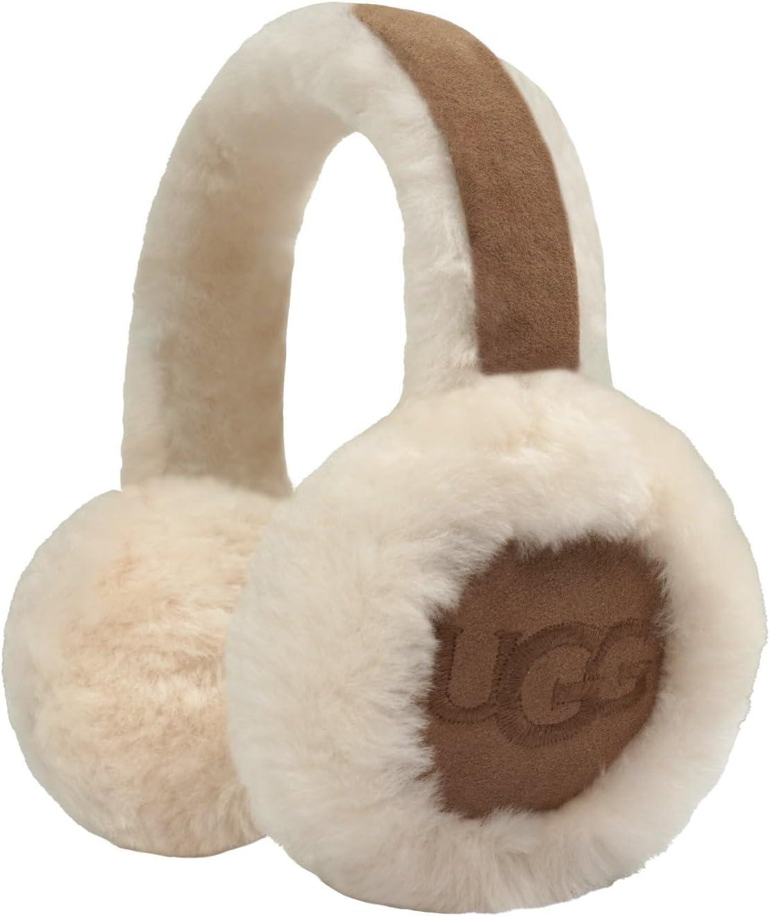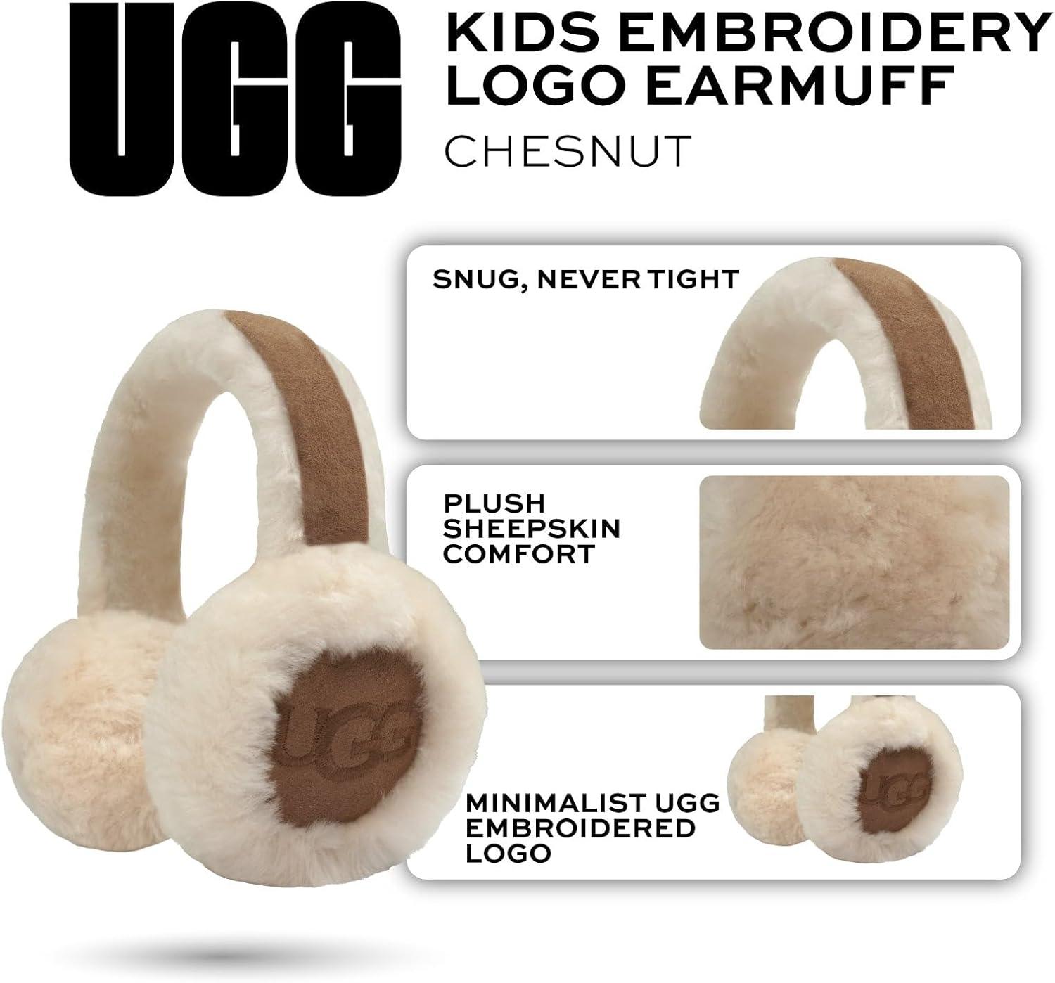 UGG Kids Earmuff with Plush Sheepskin Comfort, Snug Fit Headband – Minimalist Embroidered Logo – Warm Cold Weather Wear(Chestnut)