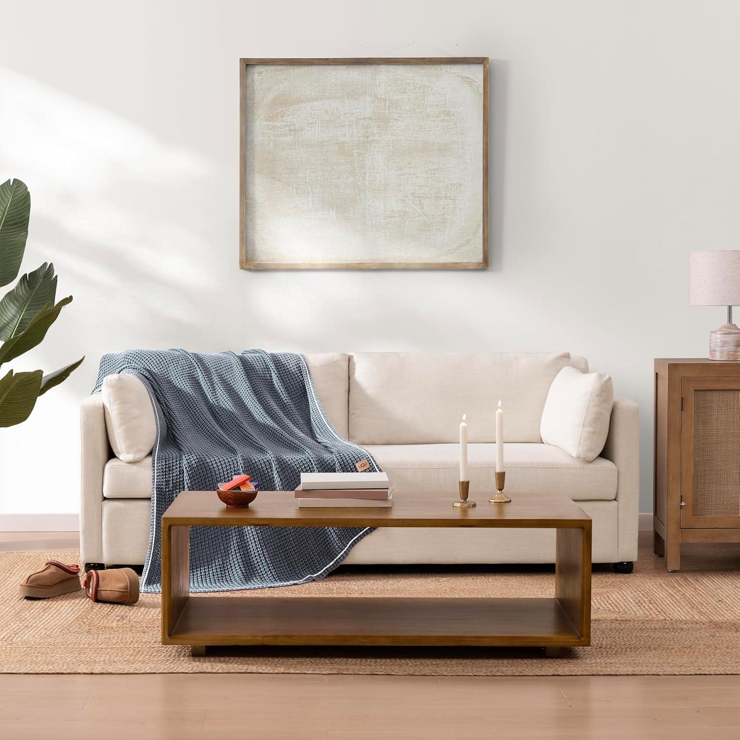 Elevate your room decor with the UGG Luna Knit Pink Throw Blanket, a timeless blend of style and comfort. Designed with a chunky knit blanket texture, this cotton throw blanket adds warmth and softness to any space. Its breathable waffle knit blanket construction provides a lightweight blanket feel while delivering cozy warmth for year-round use. This soft throw blanket is a layering piece for any sofa bed, couch chair, or bed blanket setup. Whether draped over a living room chair for added texture or as a cozy blanket for relaxing evenings, its modern design enhances both contemporary and classic interiors. Crafted for versatility, the Luna throw blanket brings effortless elegance to cozy room decor, making it a staple for any oversized couch or comfy accent chair. Its stone-washed cotton ensures an extra soft blanket feel with a relaxed, lived-in look. This machine washable blanket measures 50-inch x 70-inch (127cm x 177cm), offering a functional yet stylish touch to pink throw blankets for couch collections. Whether styled in a bedroom, living area, or dorm, the Luna knit throw blanket delivers everyday comfort with refined simplicity.