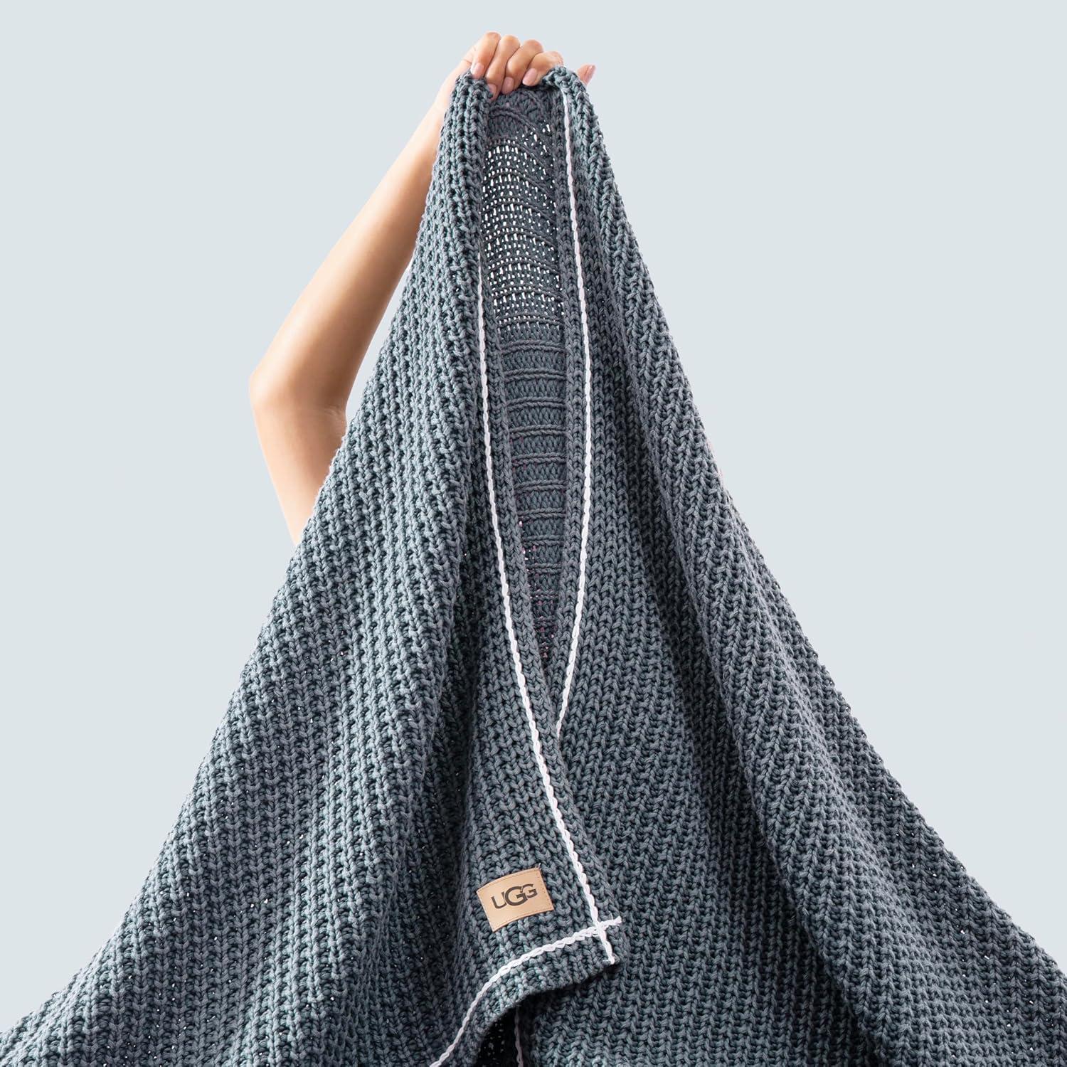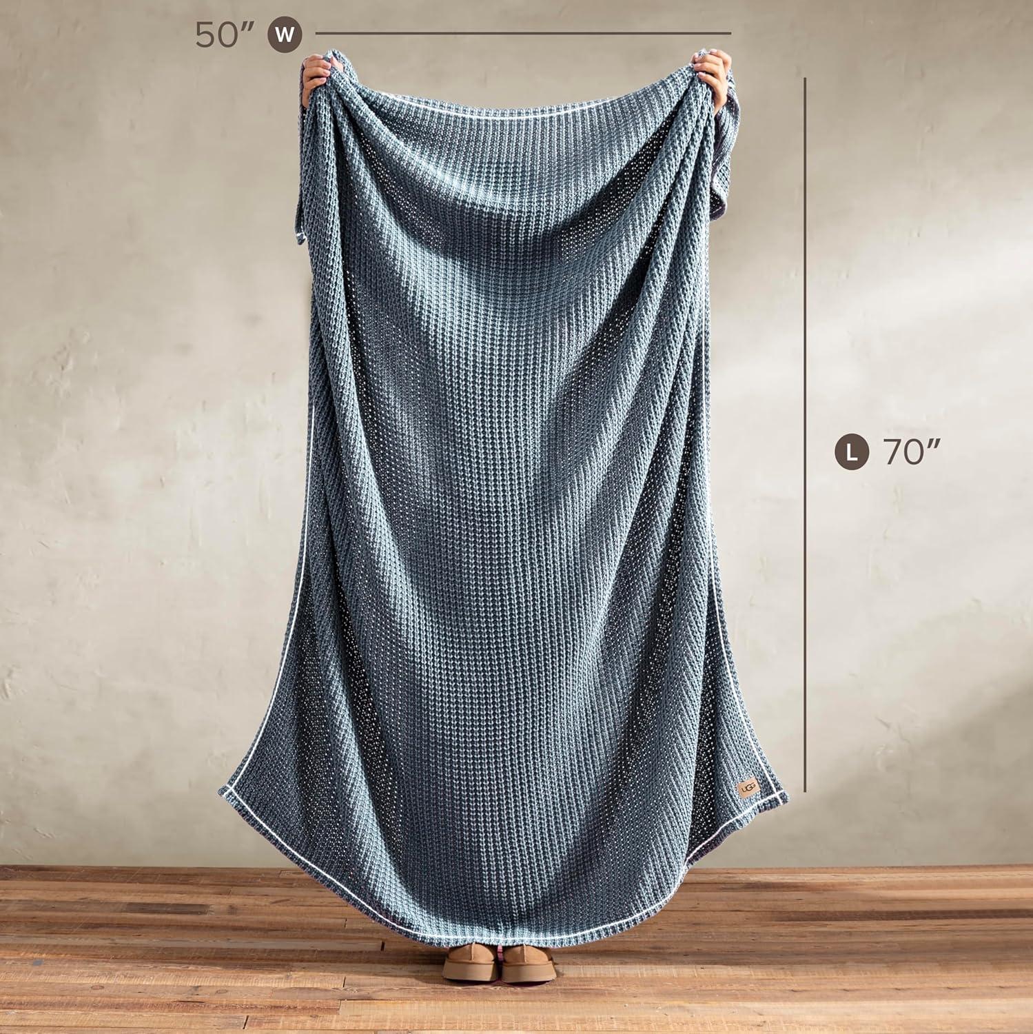 UGG Luna Knit Throw Blanket Soft Cotton Throw for Couch or Bed Cozy Soft Warm Waffle Giftable Lightweight Blanket for Living Room Bedroom, Machine Washable, 50-inch x 70-inch, Quartz Pink(Blue)