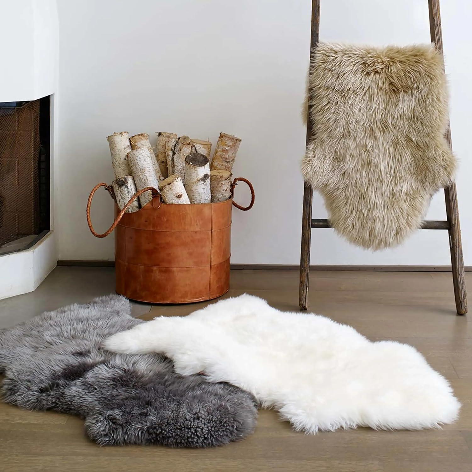 UGG Sheepskin Area Rug Genuine Real Wool Fur, Luxury New Zealand Pelts, Natural Silky Soft Lambs Skin, Thick & Fluffy, Large Chair Throw for Bedroom & Living Area, 36″ L x 24″ W x 7″ H, Natural