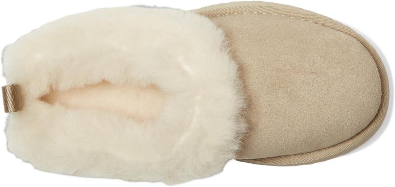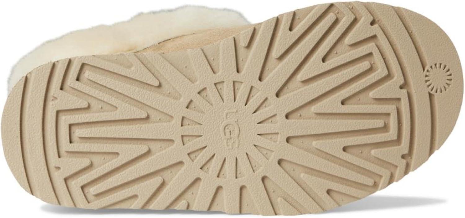 Love the Tazz but want even more UGG® coziness? Our Tazzelle is the one for you. This ultra-plush indoor-outdoor slipper features genuine suede and a lightweight 1″ platform made from springy sugarcane EVA. Sheepskin lines the interior and continues onto the lush fixed cuff, so little ones can wear these with socks, or without. Make sure to snag a matching pair in our Women's collection for a coordinated family moment.