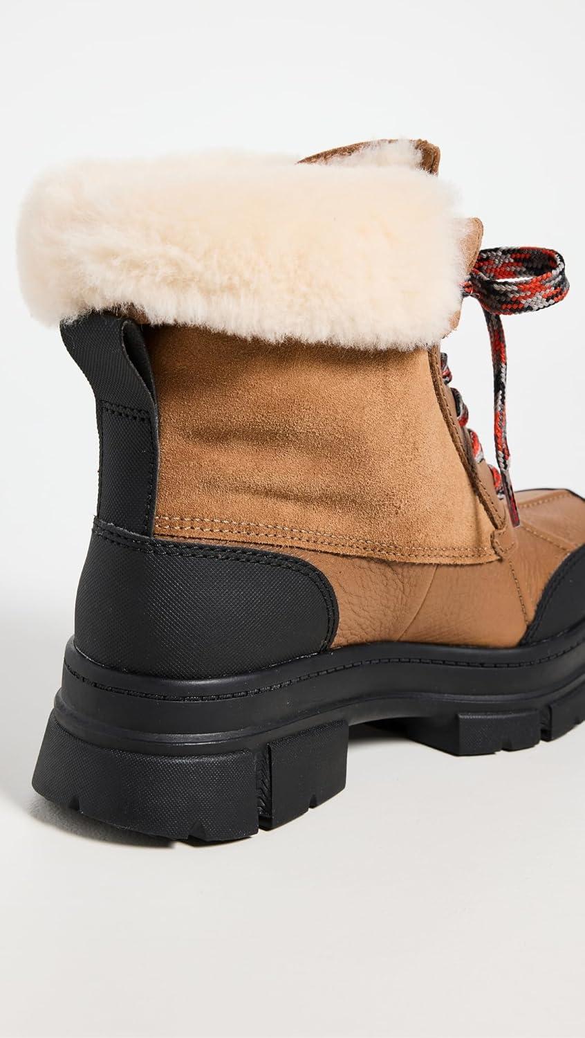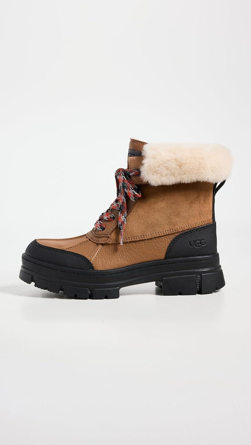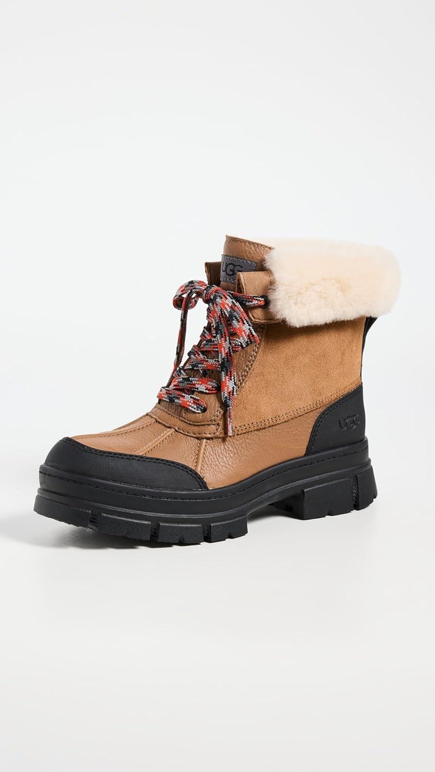 Combining the exaggerated lug sole of our Ashton with the unmistakable silhouette of our iconic Adirondack, this new weather boot gives you the best of both. Crafted from waterproof full-grain leather with sealed seams to help protect against light rain, it offers signature softness with our UGGplush™ wool blend and microfiber lining. Pair with all your favorite winter looks.