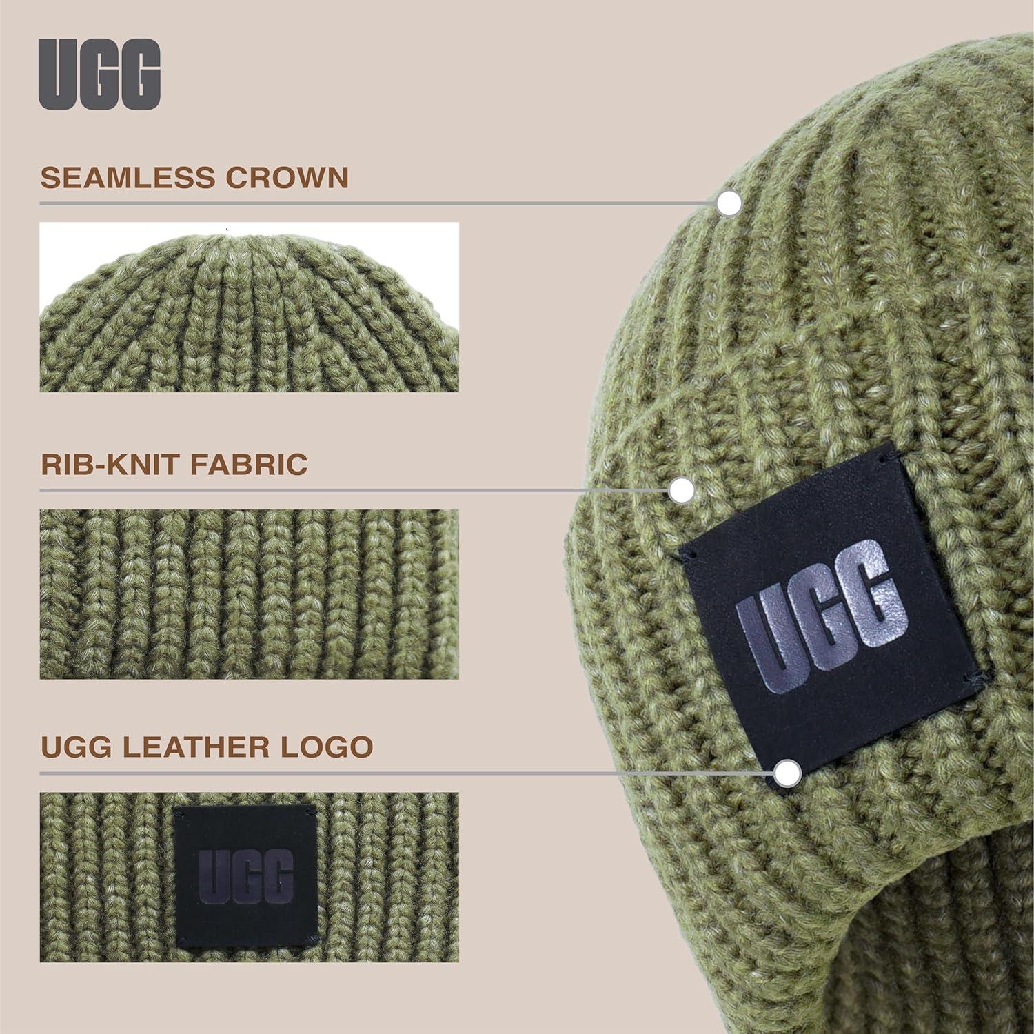 Elevate your winter style with the Women's Chunky Rib Beanie with Logo by UGG, a perfect companion for chilly climates. Crafted from a warm wool blend, this beanie not only ensures coziness but also flaunts a stylish rib-knit fabric, adding a trendy texture to your ensemble. With a snug fit, it remains securely in place while keeping you fashionably warm. The genuine leather logo patch on this beanie adds a touch of sophistication, blending style and function effortlessly. Count on UGG's established reputation for creating high-quality, long-lasting products, making this beanie a dependable choice for any winter outfit. Whether you're braving the cold for a daily adventure or just looking to stay snug during a casual outing, this beanie will keep you both chic and warm, making it a versatile and reliable addition to your winter wardrobe.