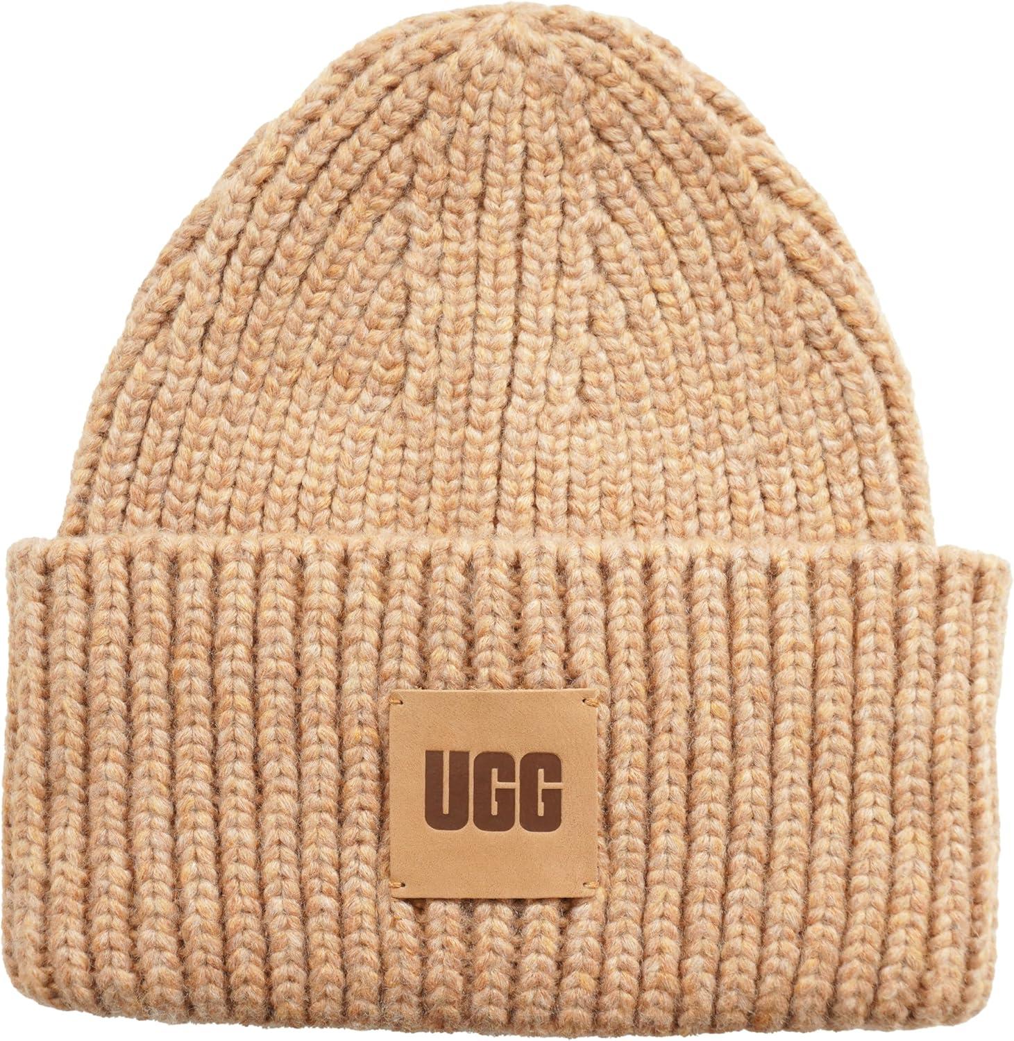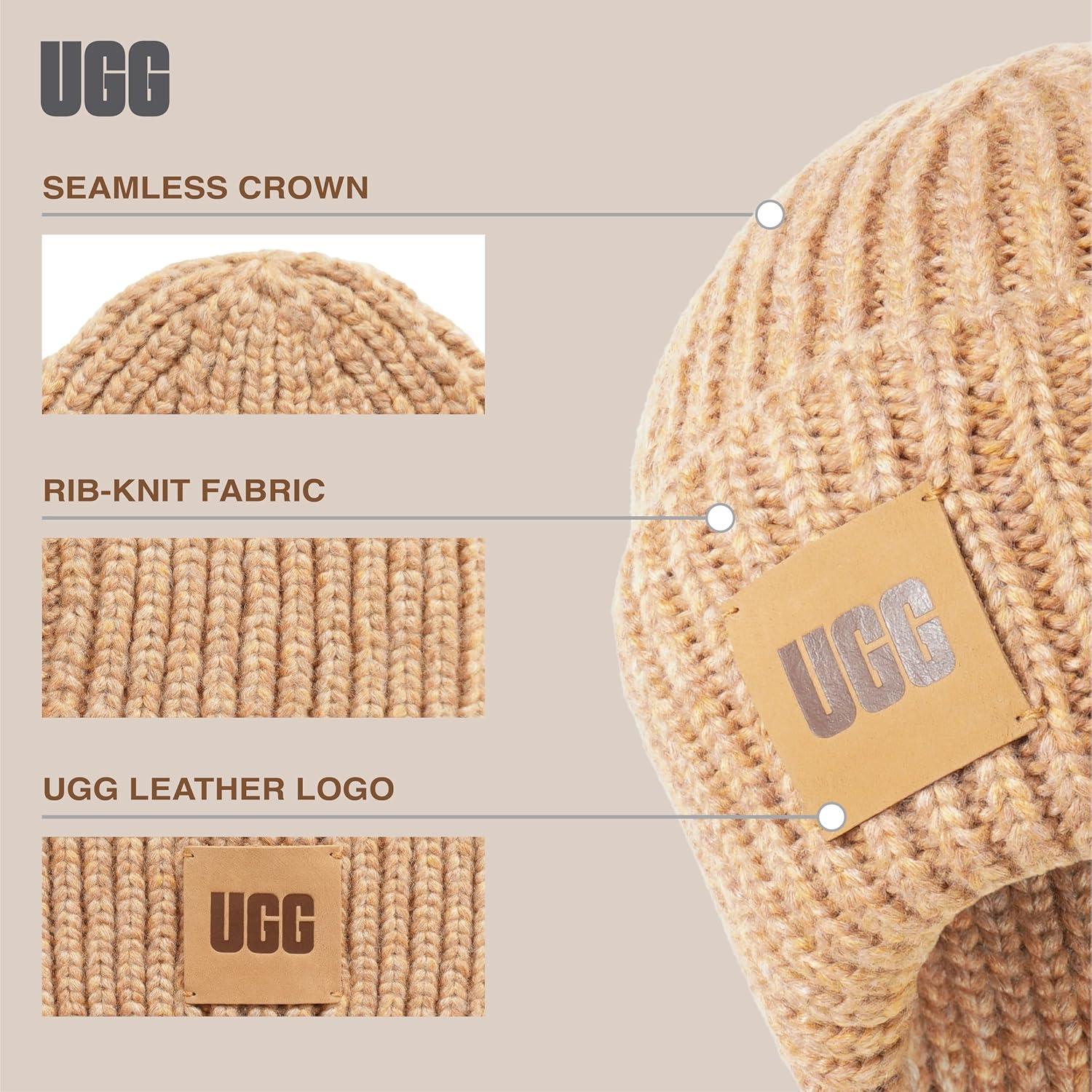 Elevate your winter style with the Women's Chunky Rib Beanie with Logo by UGG, a perfect companion for chilly climates. Crafted from a warm wool blend, this beanie not only ensures coziness but also flaunts a stylish rib-knit fabric, adding a trendy texture to your ensemble. With a snug fit, it remains securely in place while keeping you fashionably warm. The genuine leather logo patch on this beanie adds a touch of sophistication, blending style and function effortlessly. Count on UGG's established reputation for creating high-quality, long-lasting products, making this beanie a dependable choice for any winter outfit. Whether you're braving the cold for a daily adventure or just looking to stay snug during a casual outing, this beanie will keep you both chic and warm, making it a versatile and reliable addition to your winter wardrobe.