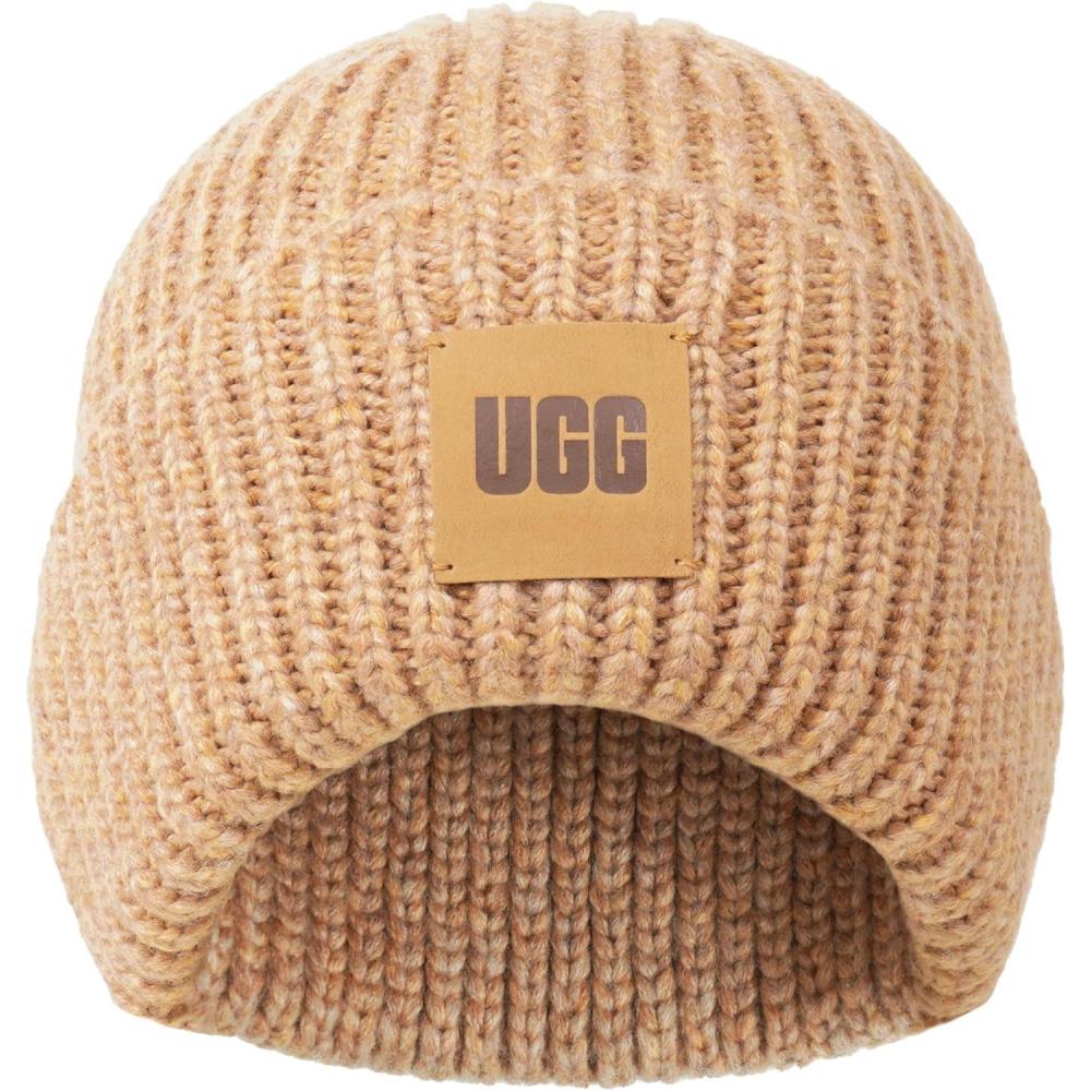UGG Womens Chunky Rib Beanie Logo(Camel)