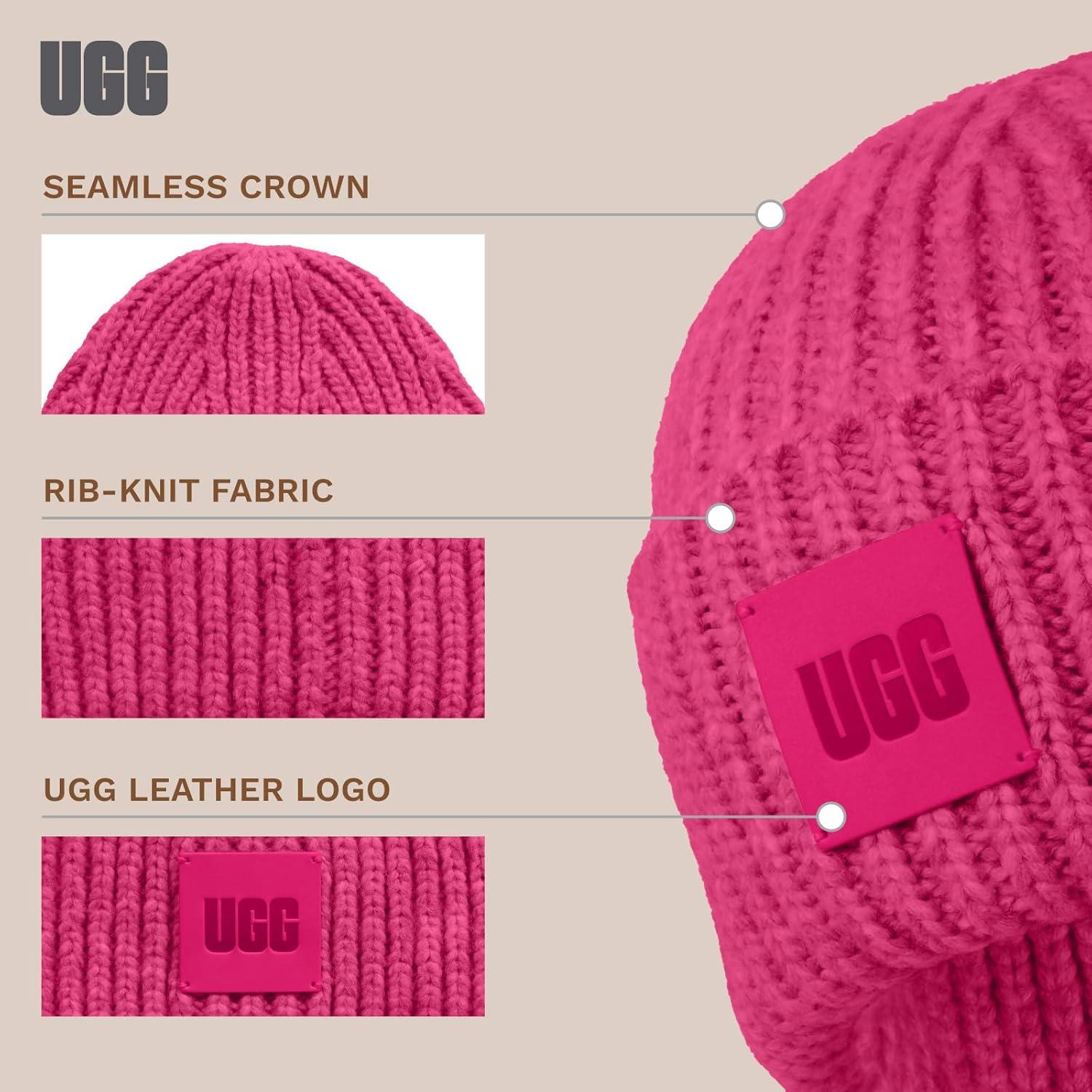 Elevate your winter style with the Women's Chunky Rib Beanie with Logo by UGG, a perfect companion for chilly climates. Crafted from a warm wool blend, this beanie not only ensures coziness but also flaunts a stylish rib-knit fabric, adding a trendy texture to your ensemble. With a snug fit, it remains securely in place while keeping you fashionably warm. The genuine leather logo patch on this beanie adds a touch of sophistication, blending style and function effortlessly. Count on UGG's established reputation for creating high-quality, long-lasting products, making this beanie a dependable choice for any winter outfit. Whether you're braving the cold for a daily adventure or just looking to stay snug during a casual outing, this beanie will keep you both chic and warm, making it a versatile and reliable addition to your winter wardrobe.