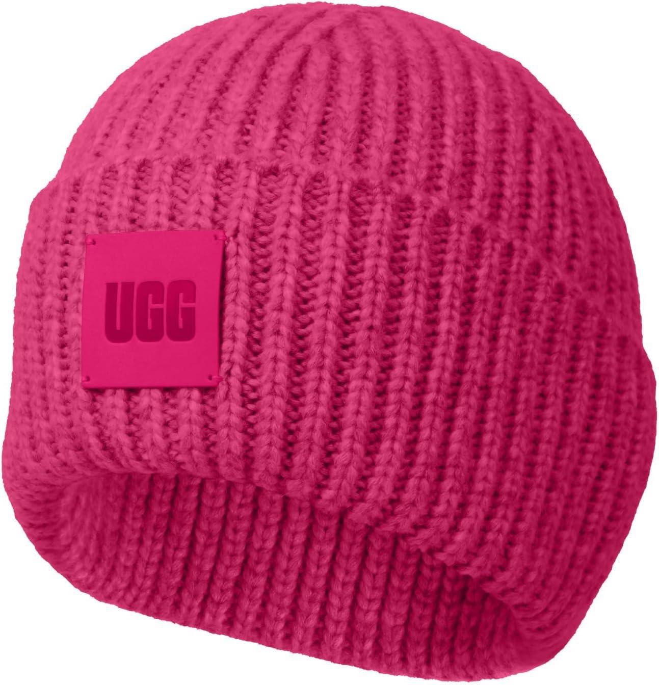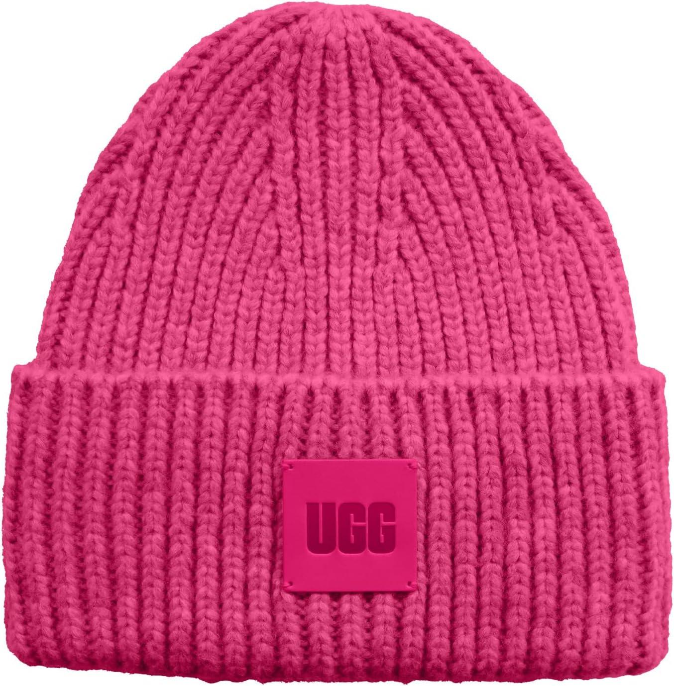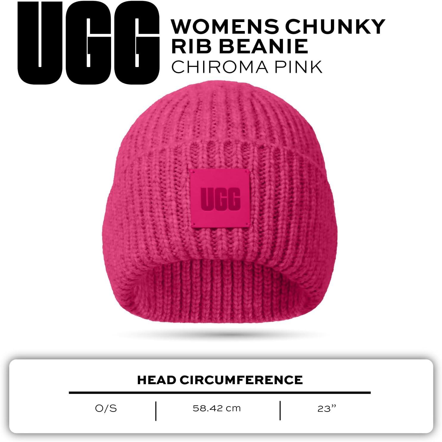 UGG Womens Chunky Rib Beanie Logo(Chroma Pink)