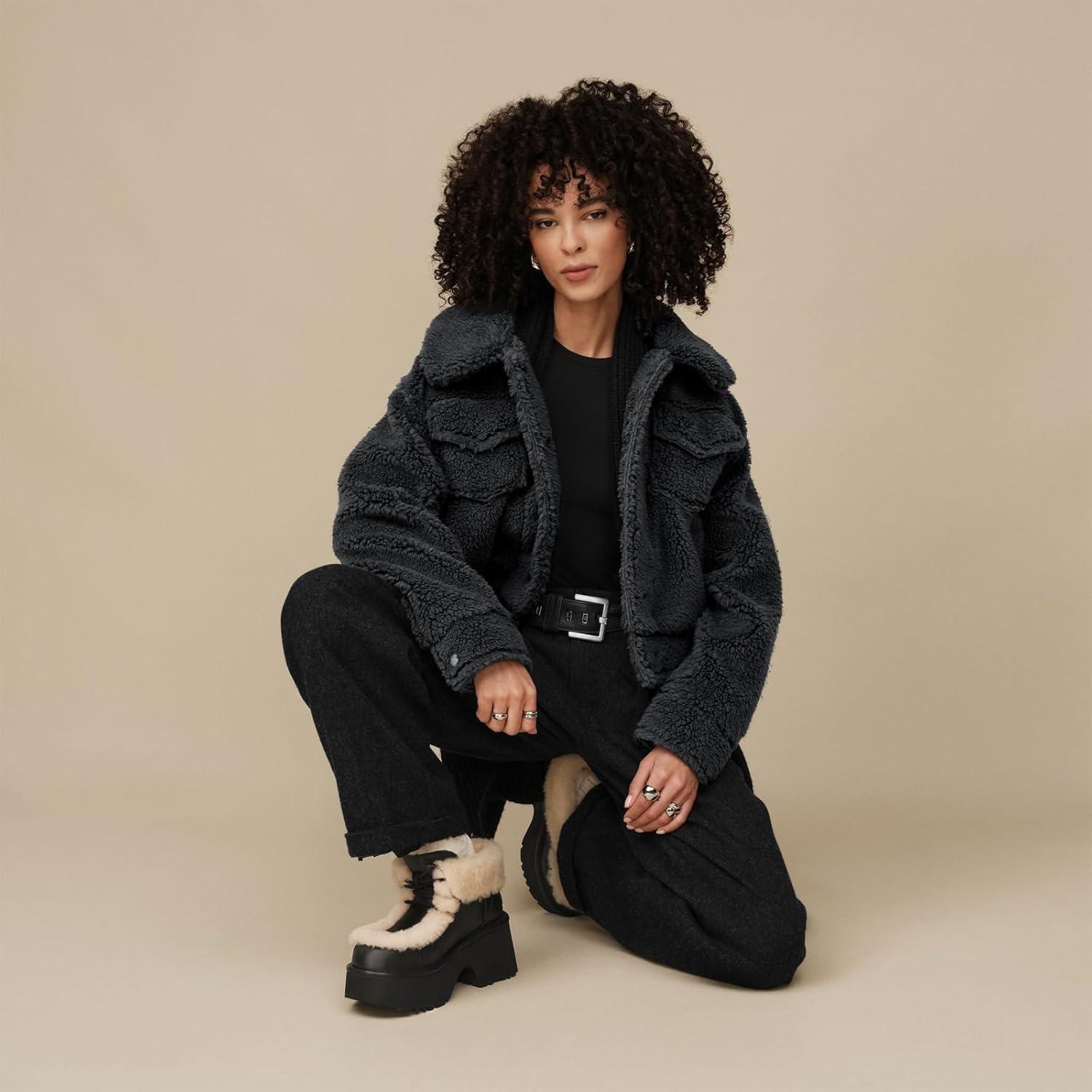 When the Feel of UGG® and iconic utilitarian style collide, you get our Frankie Short Trucker Jacket. Designed with a slightly cropped length for easy layering, it's made with ultra-soft plush fleece and finished with a smooth Sun Logo Shape lining that finishes any 'fit.