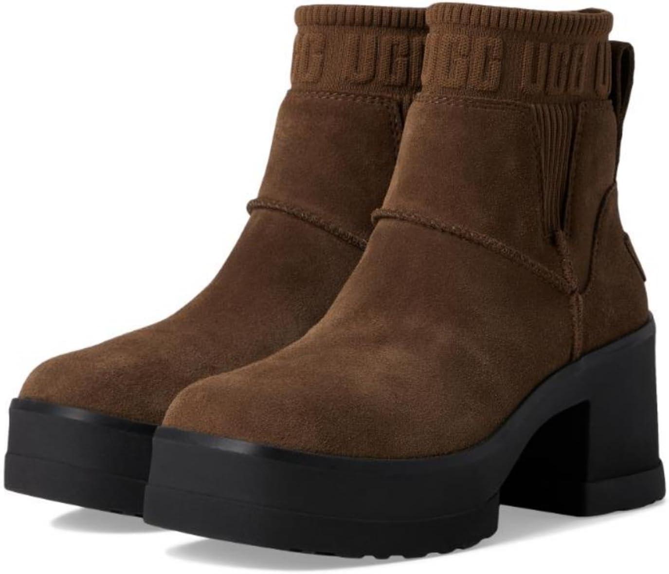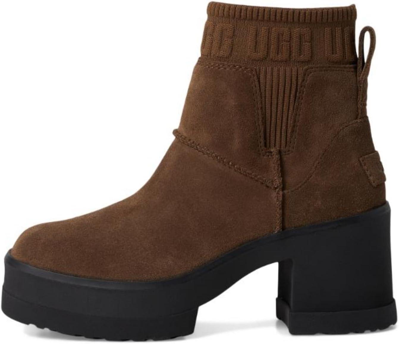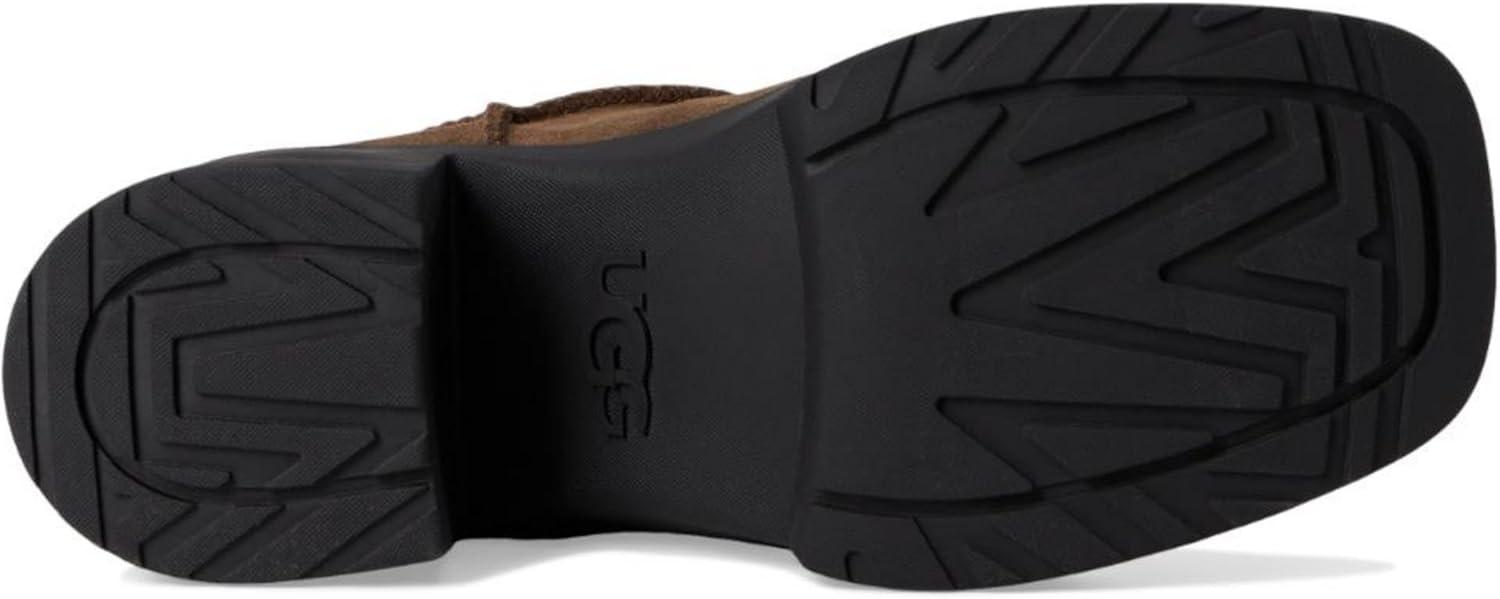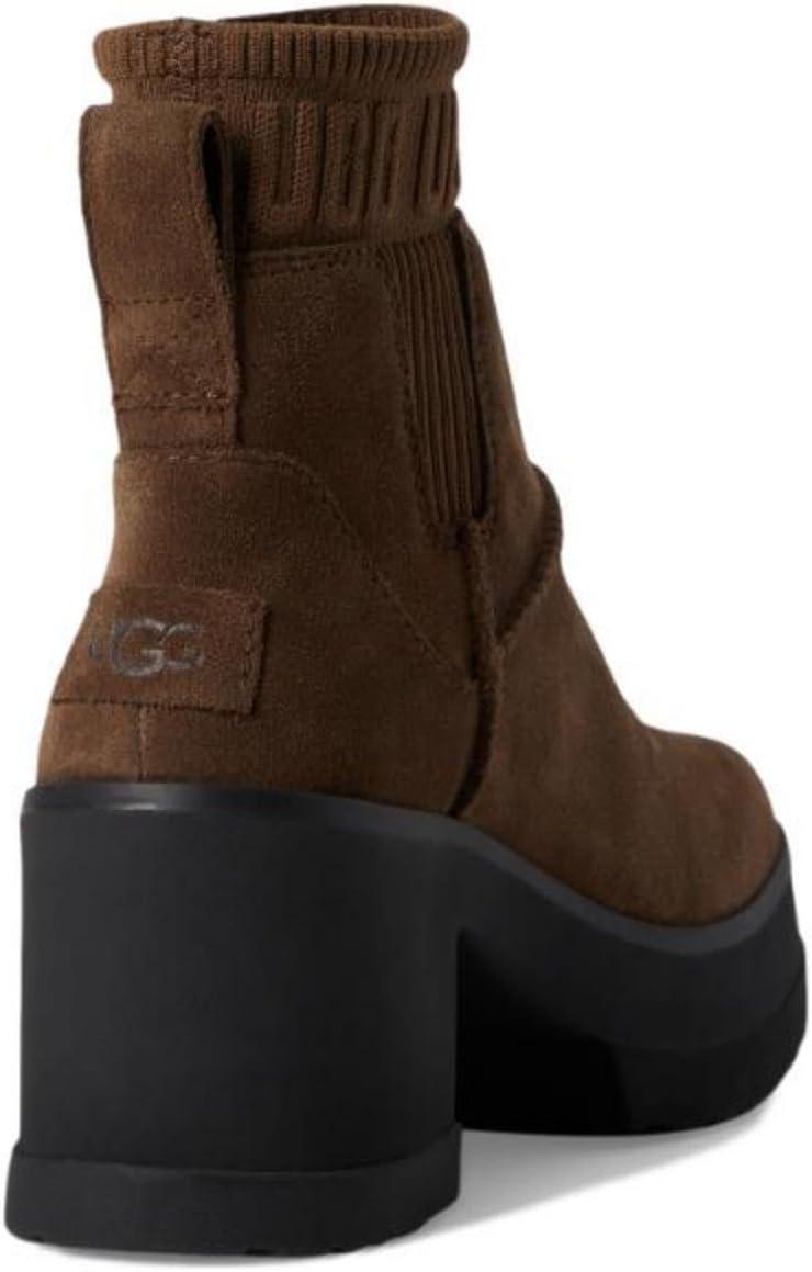 If you love our Brooklyn boot, you'll adore our Moxy Chelsea. It delivers the features you love about the Brooklyn like the chunky lug sole, Twin Seam details, and The Graphic UGG® Font knit gore, and adds a chic, square toe. The upper is crafted with water-resistant suede and lined with soft microfiber for wear-all-day comfort. Set upon a lightweight rubber outsole that adds 2″ of height at the platform, and 3″ at the heel.