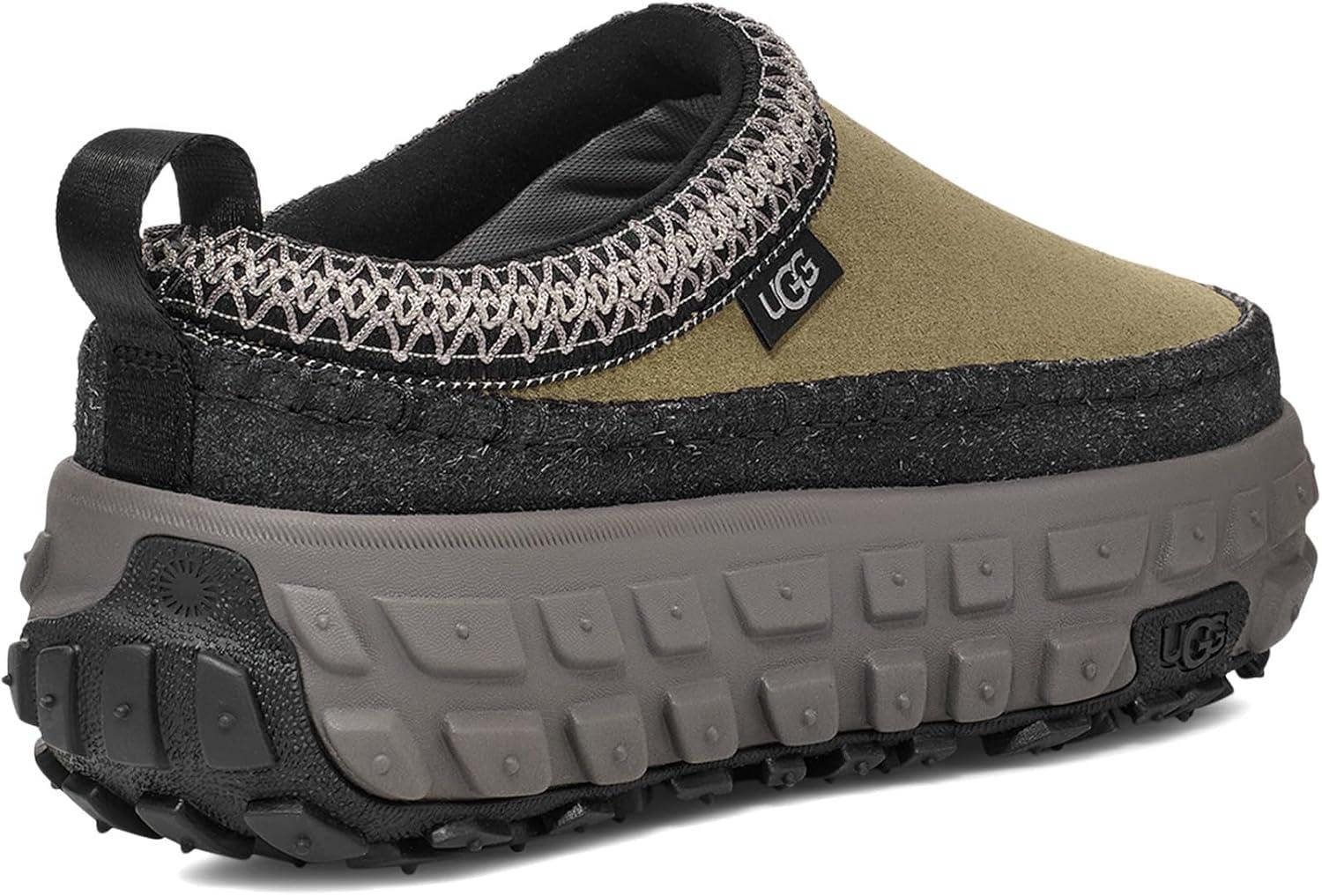 Unapologetically expressive. Built to be bold in looks and comfort, the Venture Daze is a remix of our classic Tasman slipper. We've equipped the Venture Daze with a ready and grippy outsole with large tire treads for terrain-conquering traction. From festival weekends to campfire nights, the Venture Daze is an adventure essential. Designed with a suede upper, our classic UGGbraid™, and iconic box stitch, all on a lightweight sugarcane EVA footbed and midsole.