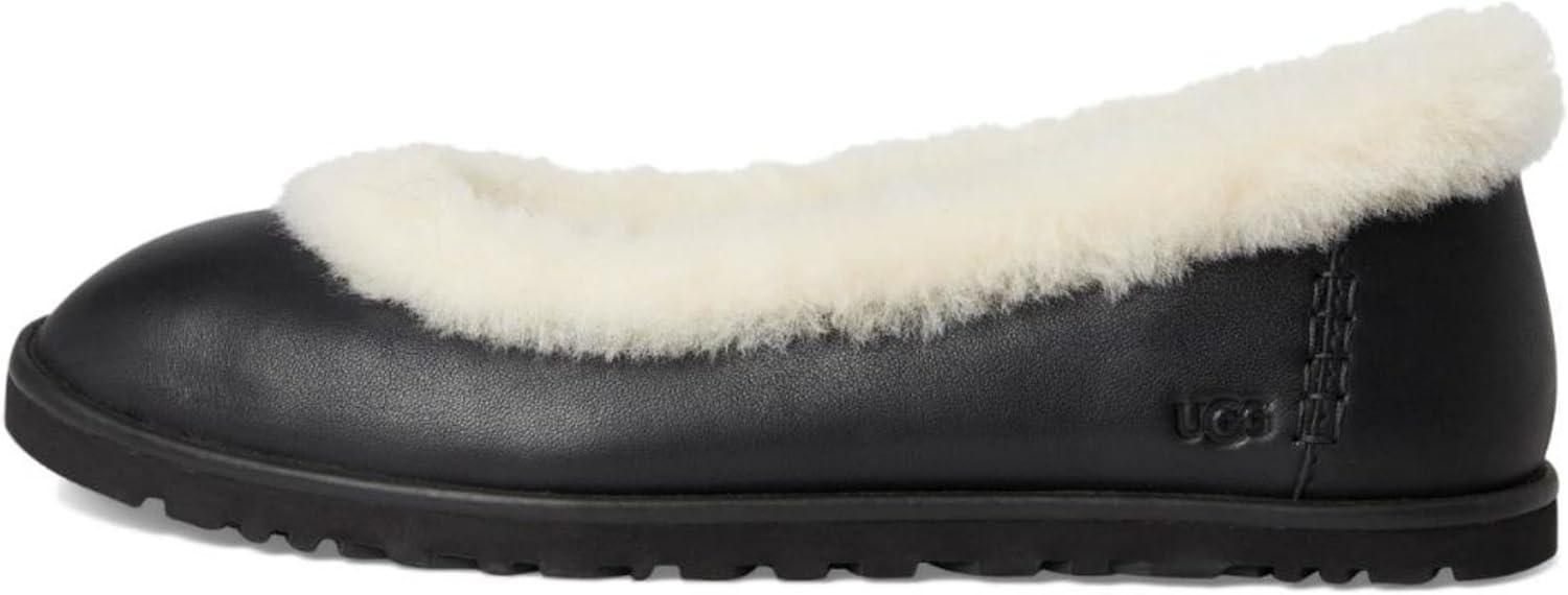 UGG Womens Zora Leather Ballet Flat(Black)